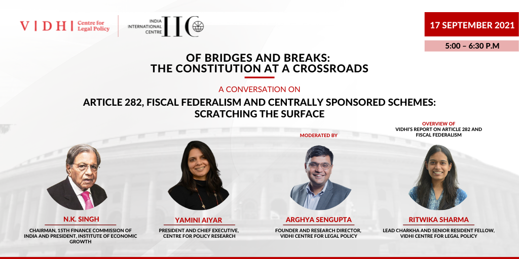 Ritwika Sharma, Lead, Charkha, Vidhi’s Constitutional Law Centre, will begin with an overview of Vidhi’s report on Fiscal Federalism and Centrally Sponsored Schemes: Rethinking Article 282 of the Constitution.